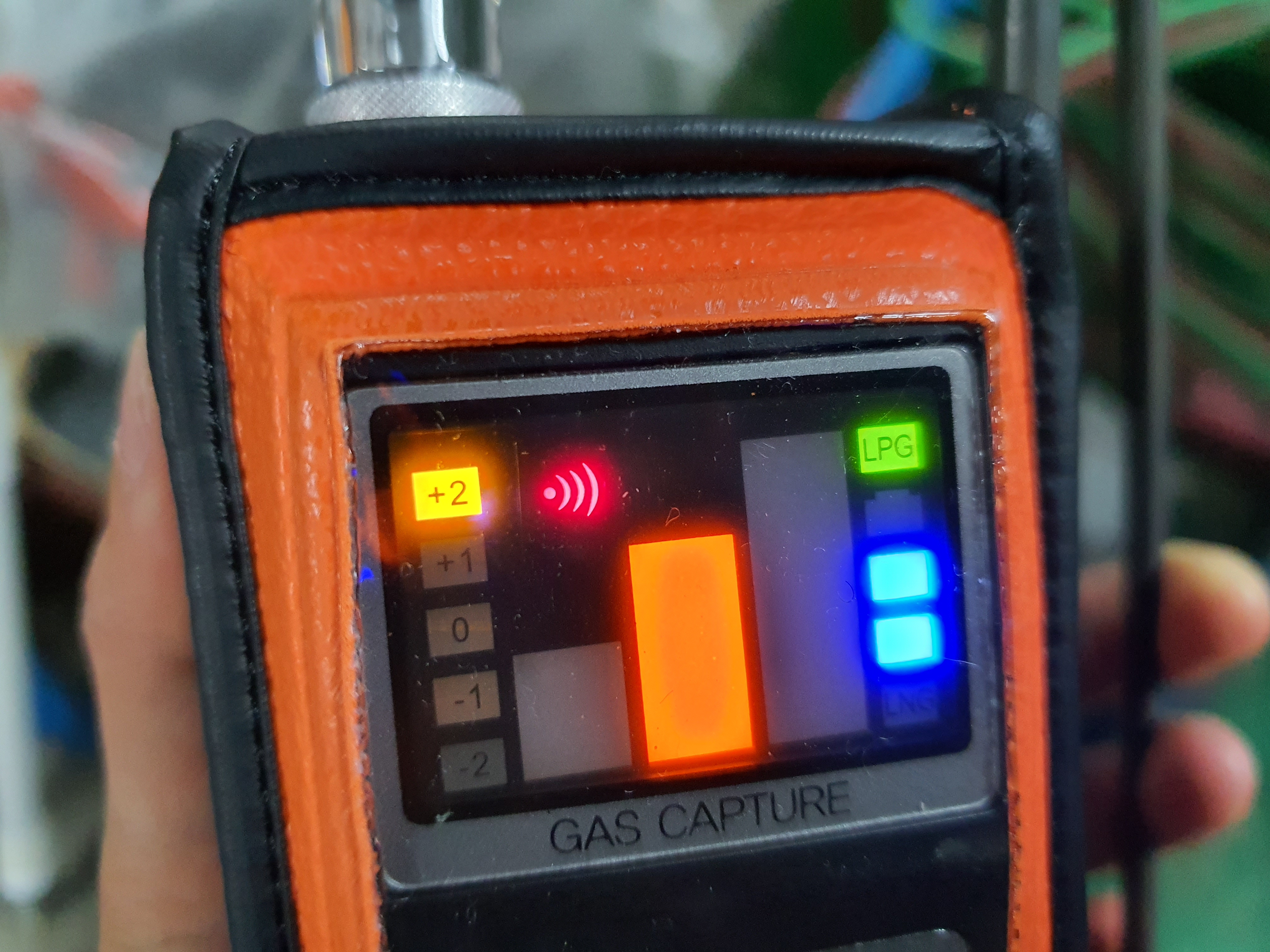 가스누출 정도가 심할 때에는 빨간색입니다