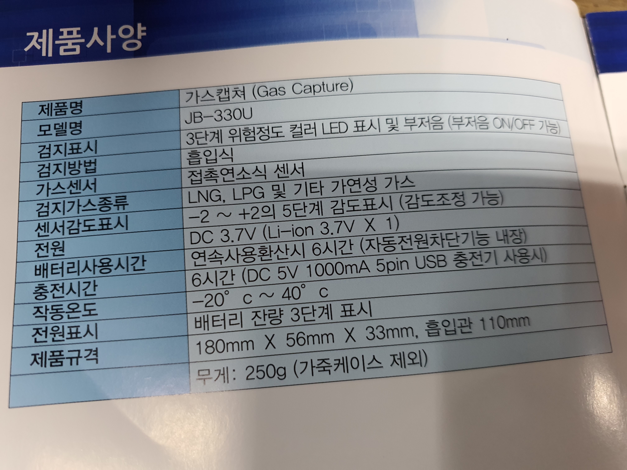 가스누출탐지기 모델명은 JB-330U 라고 합니다 ^^