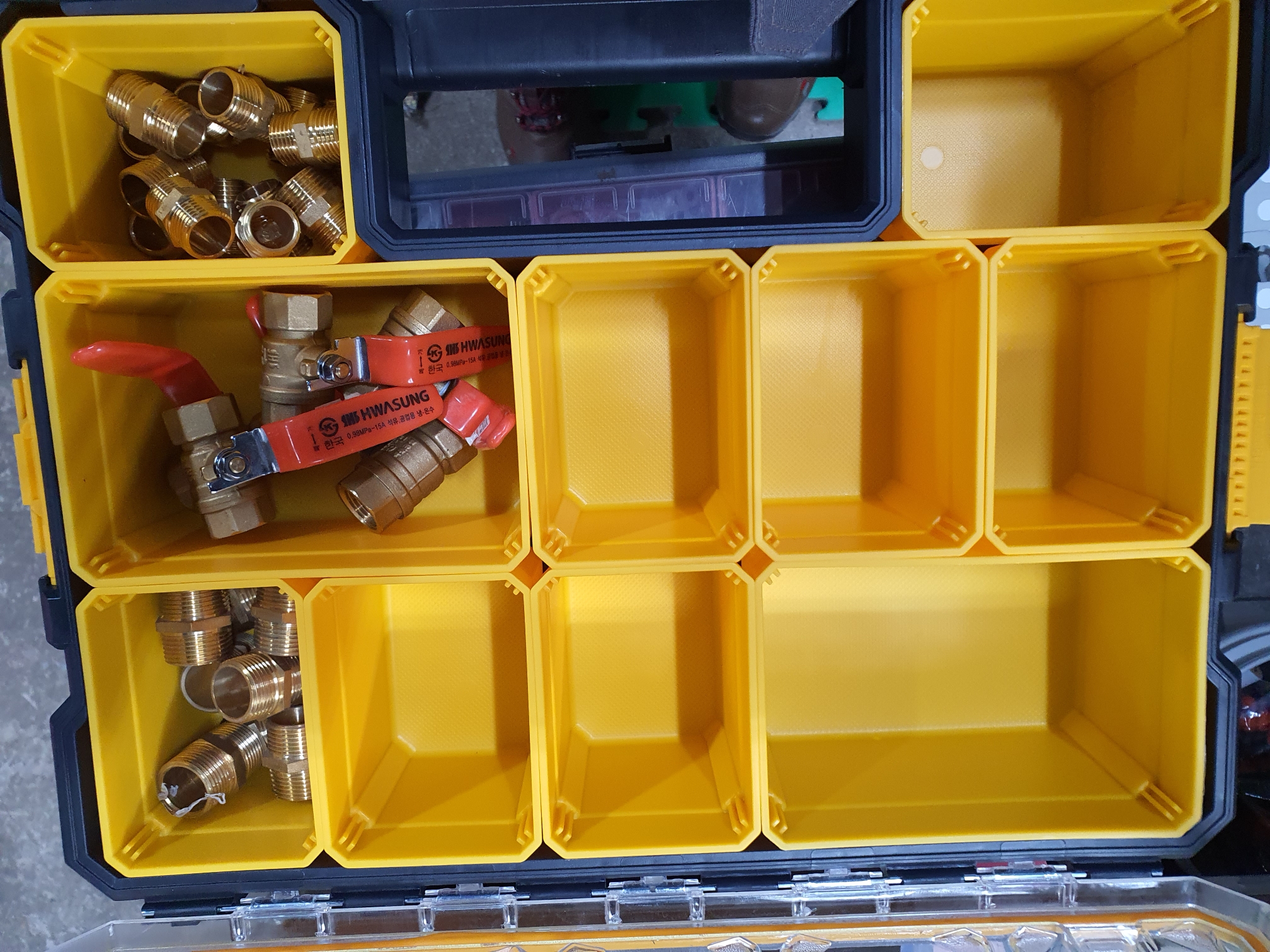 칸막이가 많은만큼 다양한 종류의 부속을 수납할 수 있어요