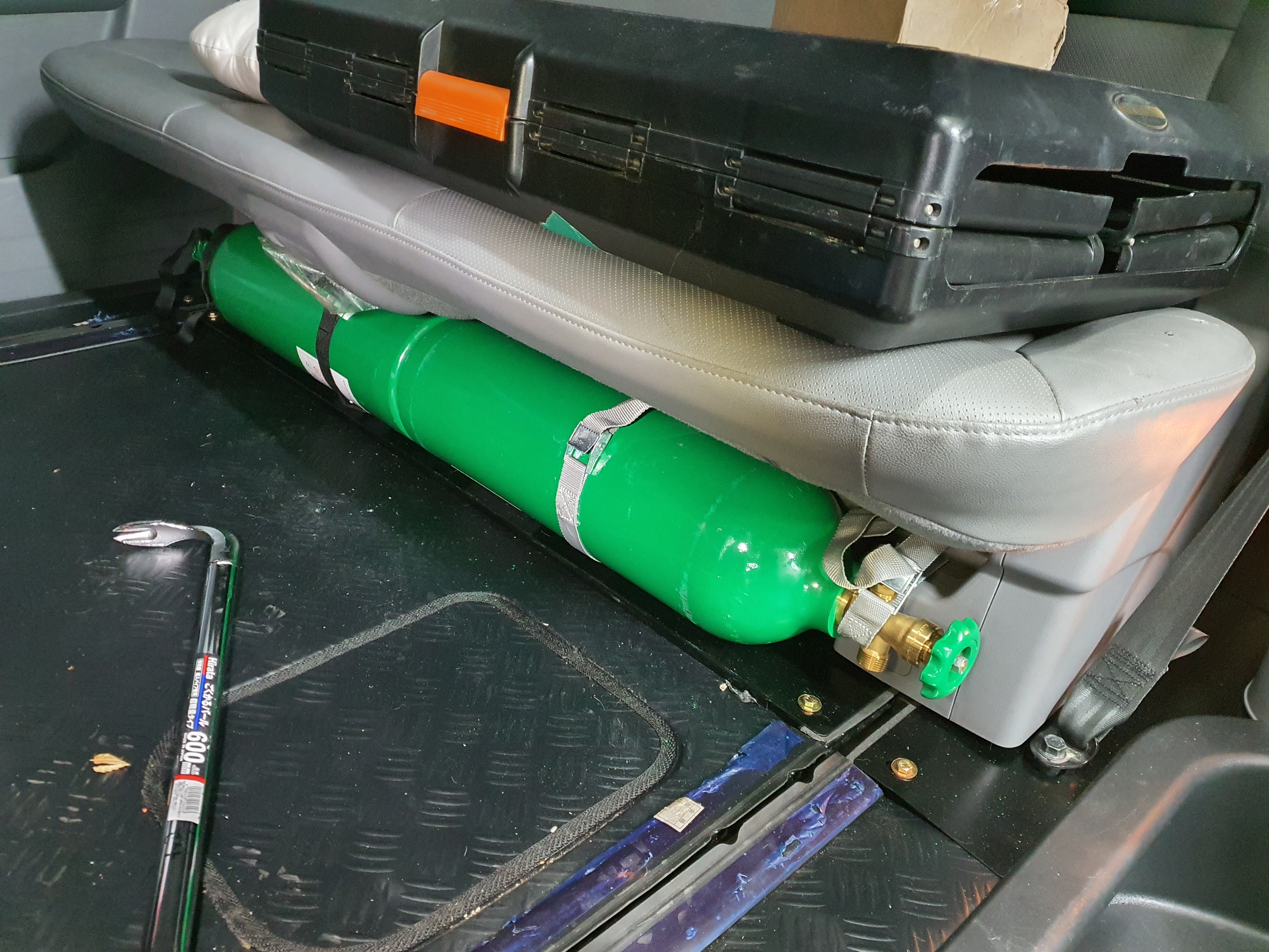 이렇게 제 차의 2열시트에 미니산소통을 매달아보았습니다 ^^
